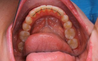 Брекет приклеивают к зубам на клей, устанавливают дугу, которая обеспечивает необходимое давление на зубы.